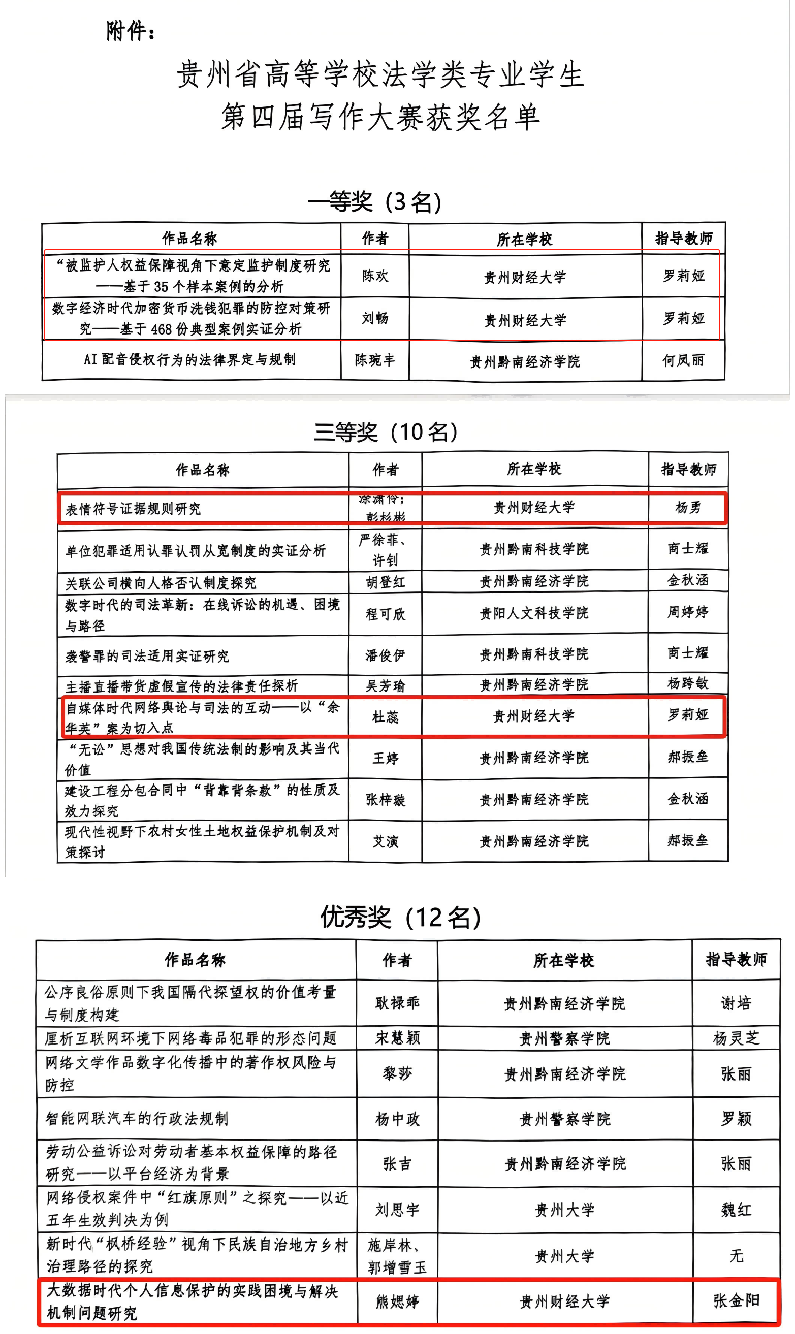 乐动法学院学子在贵州省高等学校法学类专业学生第四届写作大赛斩获佳绩