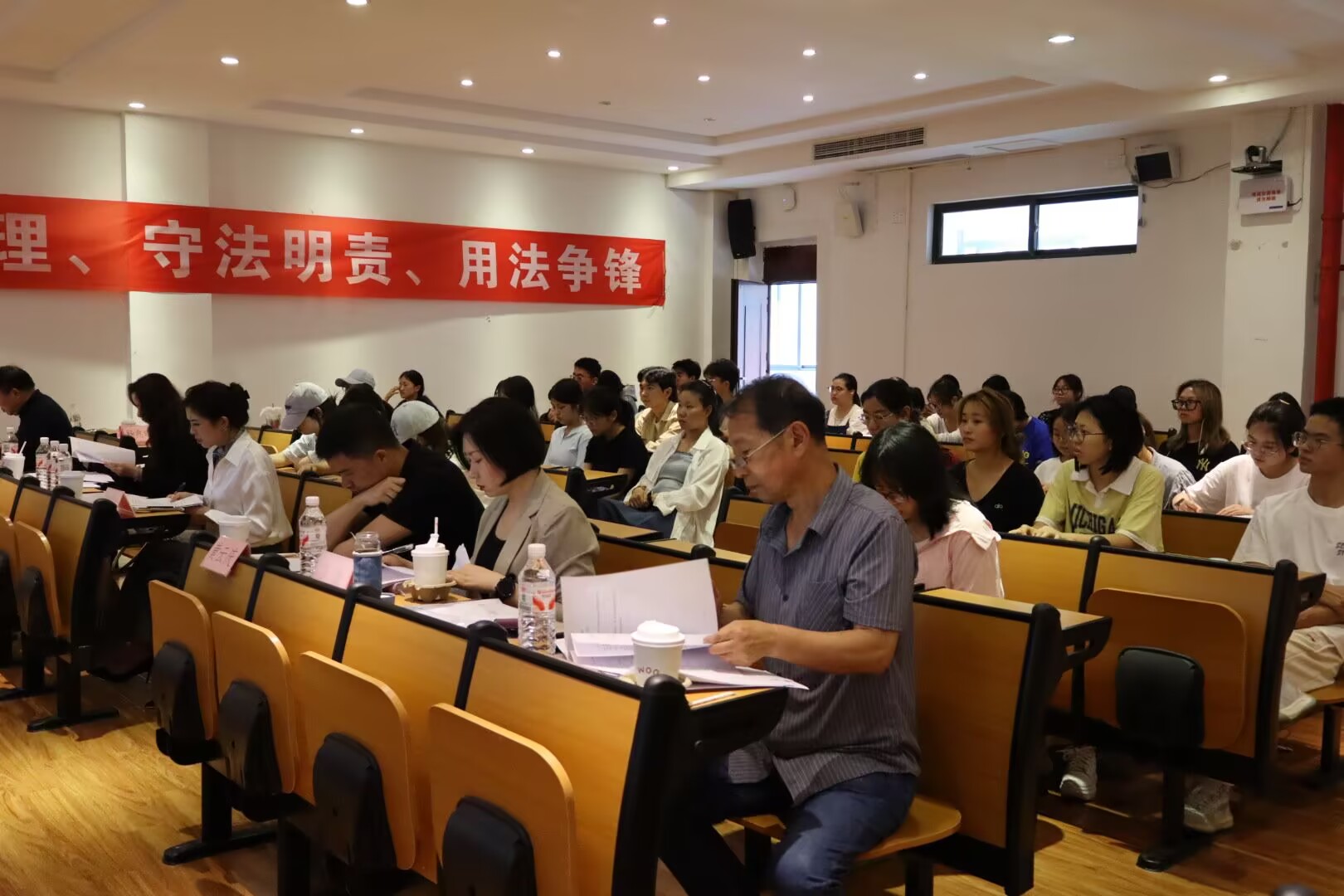 开幕式上,邵新顺致辞。他强调,模拟法庭大赛不仅是同学们展现法律素养与思辨能力的舞台,更是连接理论与实践的桥梁。希望同学们以此次大赛为契机,在今后的学习和生活中,继续保持对法律的敬畏之心和探索热情,努力成长为德才兼备、全面发展的高素质法律人才。